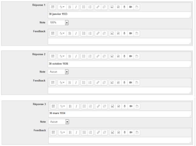 Si plusieurs bonnes réponses sont acceptées, il faut répartir le score en pourcentage sur 100. On peut également attribuer des notes négatives pour les éléments de réponses faux, afin d'éviter que le participant ait une bonne note en cochant toutes les réponses proposées.